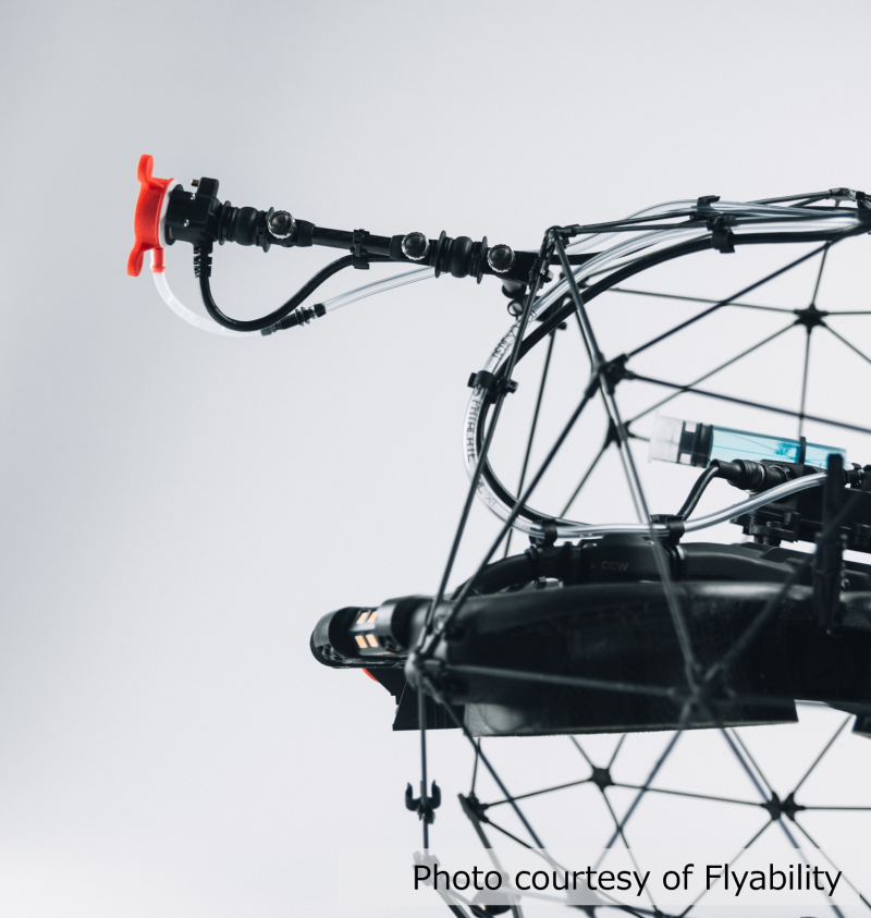 Flyability社と超音波厚さ計メーカーCygnus Instruments社が共同開発した、ELIOS 3の拡張ペイロードの一つで、日本国内ではブルーイノベーションが2024年5月より提供を開始しました。このペイロードを搭載したELIOS 3は、プラントやインフラ施設、航空機・自動車工場、船舶ドックなど、従来は足場や特殊機材が必要だった箇所の超音波厚さ測定を遠隔・安全・低コストでの実施が可能になります。2025年4月、日本海事協会(ClassNK)の認証を取得しました。