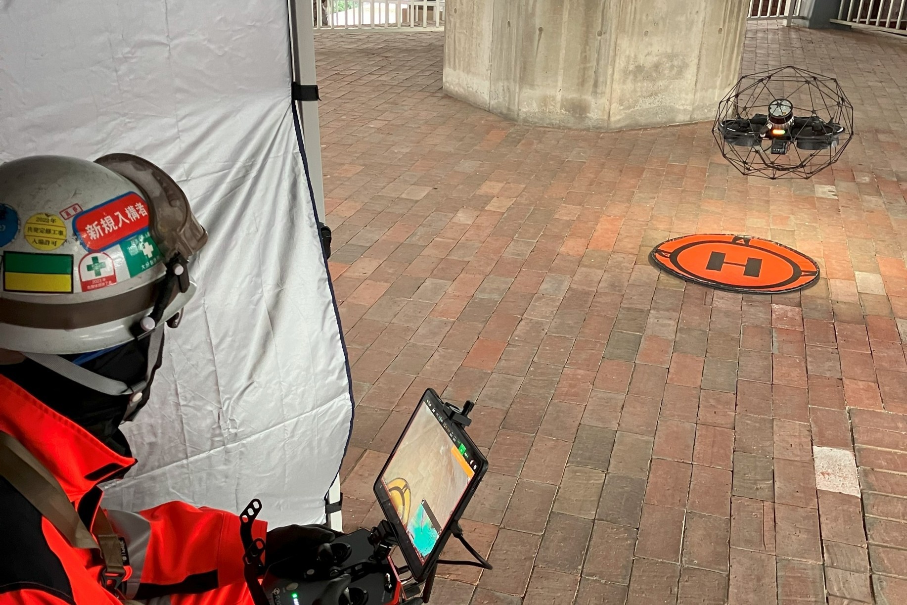 ドローン活用に際して、同社では当初よりELIOSシリーズに注目していました。狭小・閉鎖空間に強いELIOS 1やELIOS 2を活用し、ブルーイノベーションによる委託運用で実績を積んでいました。特に、ELIOSシリーズの特長である球体ガードは、現場での安心感は非常に大きく、また機体のコンパクトさも、現場での運用に則していた事も高く評価されました。