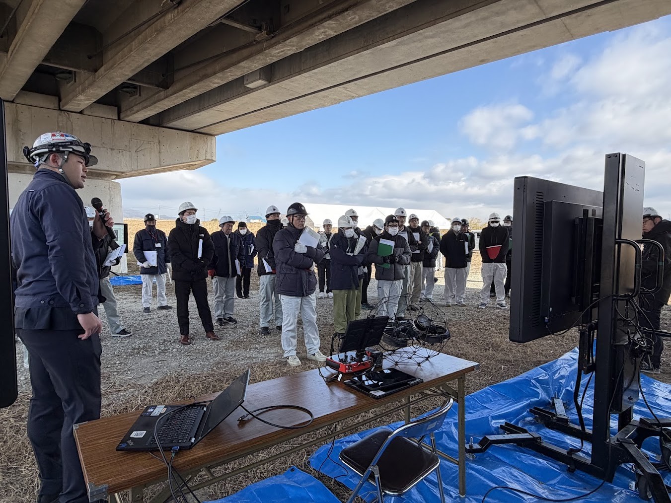 あわせて実施された事前テスト飛行の映像紹介では、肉眼では確認困難な橋梁深部の状況を鮮明に映し出し、参加した自治体関係者に「実運用への即戦力」を具体的にイメージしていただく機会となりました。