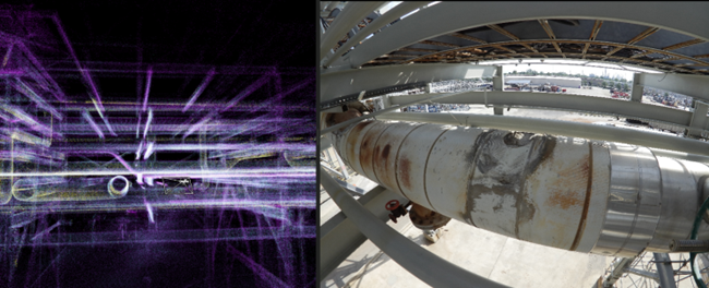 アクセス 600メートルの配管ラックの点検には、高所での長時間の作業が必要となり、その調整は困難で、より厳格な安全対策が必要となります。ELIOS 3を使用することで、短時間で安全かつ容易に点検を行うことができました。 |