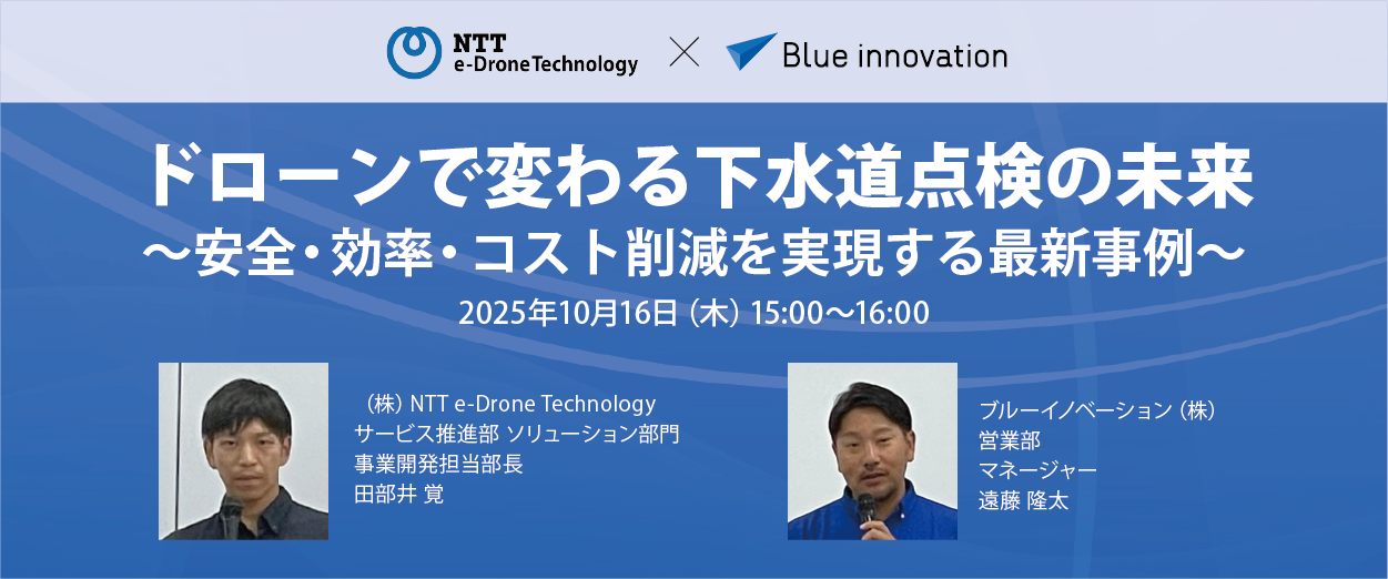 本ウェビナーでは、パートナー会社である株式会社NTT e-Drone Technologyとともにこれらの課題を解決する最新の下水道点検のソリューションをご紹介します。