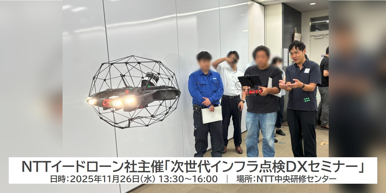 ブルーイノベーションの販売パートナーであるNTTイードローン社は、閉鎖空間点検ドローン「ELIOS 3」とAI画像解析サービス「eドローンAI」を活用した『次世代インフラ点検DXセミナー』を2025年11月26日(水)に開催します。