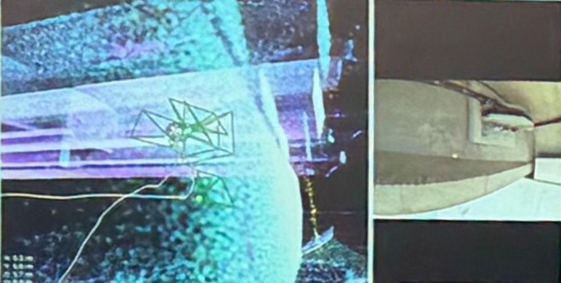 さらに搭載カメラは上下180度にチルトし、上部・下部を柔軟に確認できるほか、搭載されたLiDARによって、飛行と同時に3Dマップを生成。撮影位置を空間上で把握できるため、点検箇所の正確な把握と管理に活用できます。本点検技術は、すでに国内の下水道管内調査やプラント施設など300ヵ所以上の導入実績があり、国土交通省のNETIS(新技術情報提供システム)にも登録されています。今回のデモは、その信頼性と実用性が橋梁分野でも極めて有効であることを示すものとなりました。