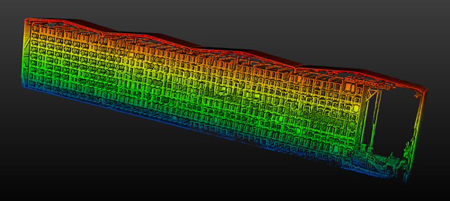 顧客は後から確認できる、1つにまとまった完全な点群データを要求しました。この点において、施設管理機能がプロジェクトの成功に不可欠だったのです。各ラックの通路における飛行データは、収集と同時に施設管理ソフトウェア内で統合されました。最終的にTEXO社は、後処理を一切必要としない明確な点群データを提供しました。飛行中、パイロットはCockpitを使用して過去の飛行で取得した重要ポイントを確認できたため、データ収集過程の進捗をリアルタイムで把握することが可能でした。最終的な点群データでは、各飛行で取得した重要ポイントが明確に表示され、追加処理や点群間のデータ転送なしに収集データの全体を容易に点検することができました。